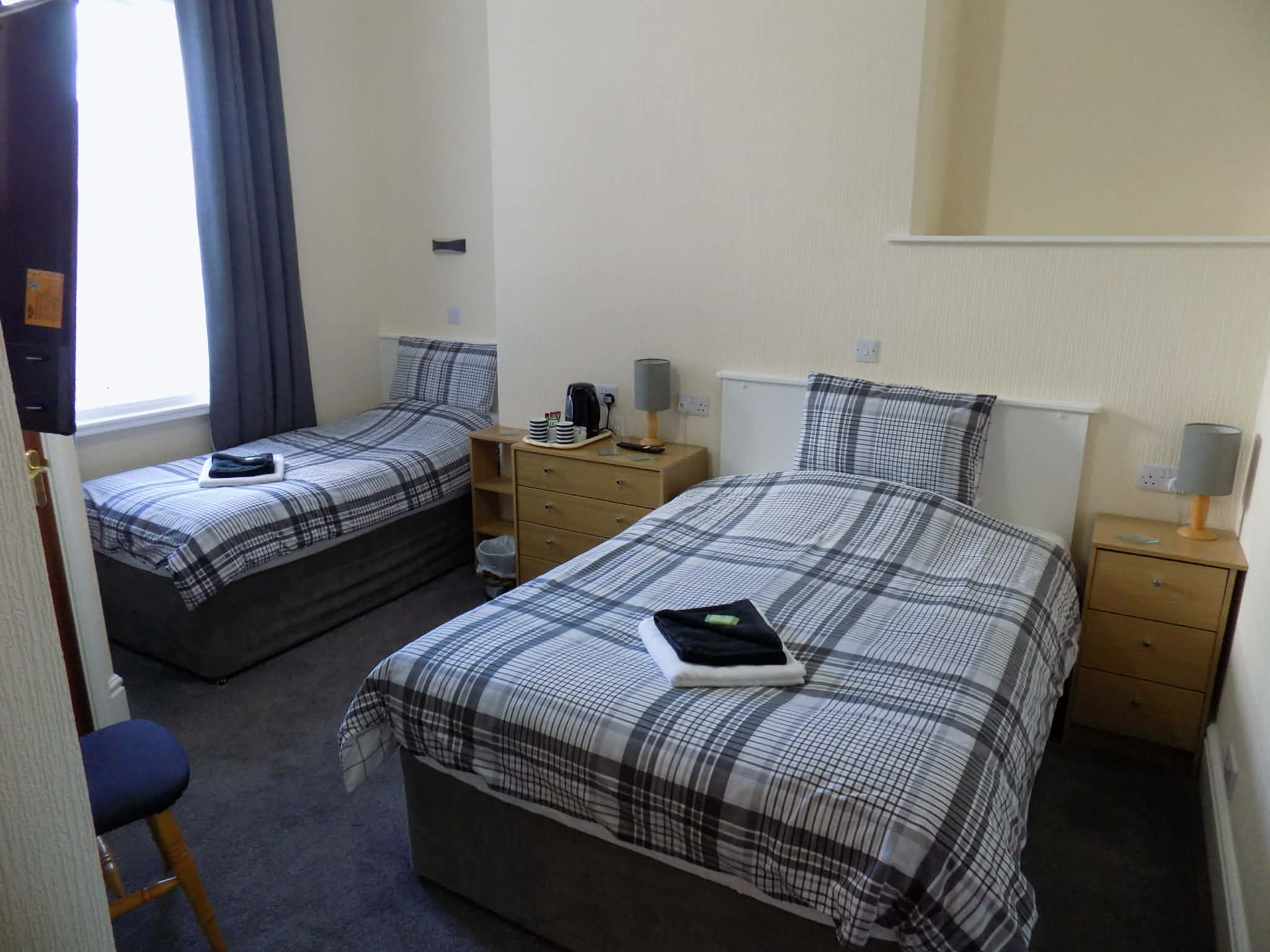 Twin/Family/Superior Double room located at the rear of the building on the ground floor with a full en-suite shower room.